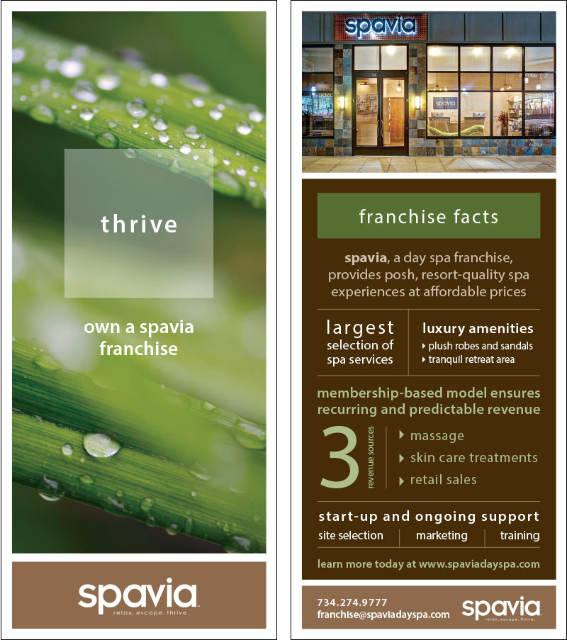 Spavia, which provides high-quality, affordable spa services, used this promotional piece to attract potential franchise owners.